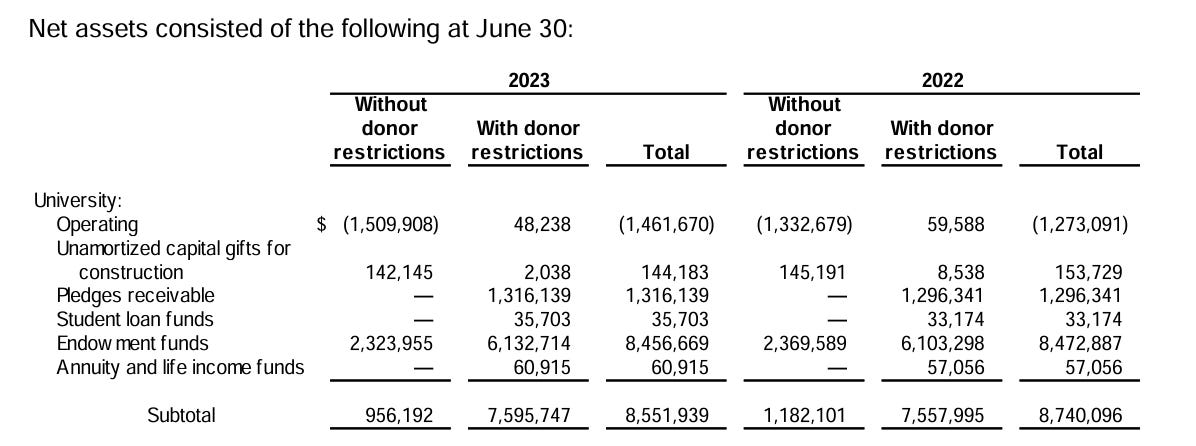 All this language comes from this part of the bond statement’s financial reporting on the university: