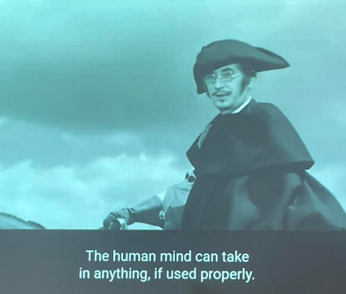 I watched the movie with Shelly while we were taking care of Sylvan our newborn, and there were some amazing lines, like this one where a character says “the human mind can take in anything if used properly.”